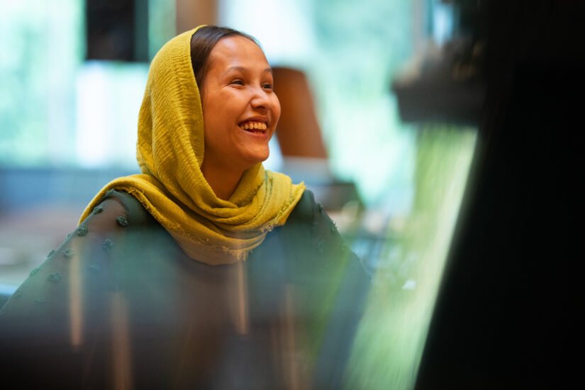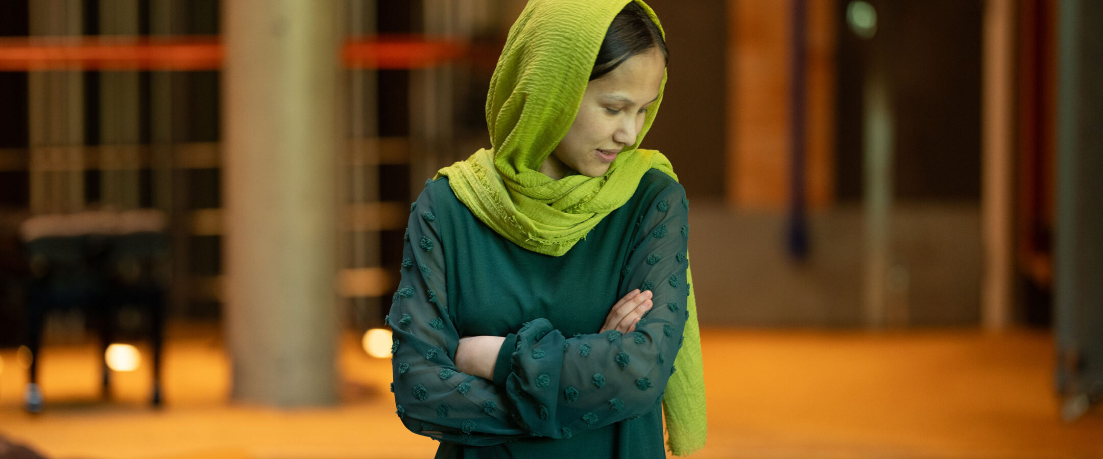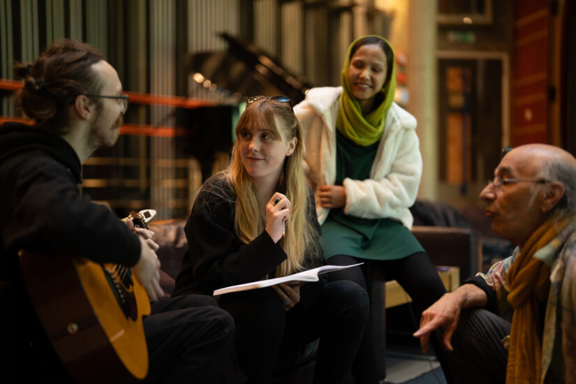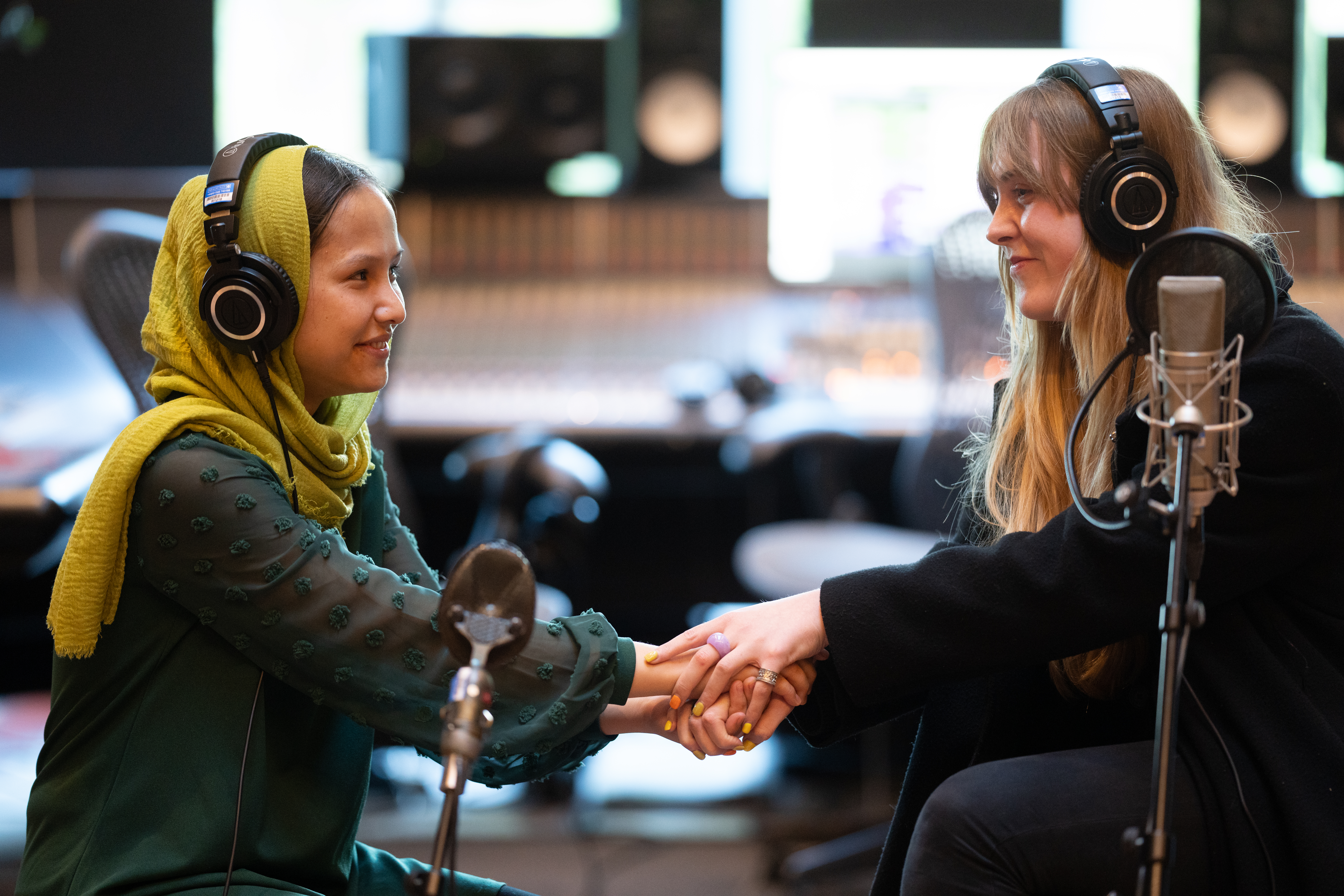 Zarifa, who fled Afghanistan due to oppressive regimes banning music and artistic expression, found her voice through a songwriting project facilitated by Beyond Skin, WOMAD Foundation, and the Arts Council of Northern Ireland. Her first composition, ‘Afghan Girl’, was brought to life with Eva’s melody and vocals, creating a poignant anthem of hope and resistance.